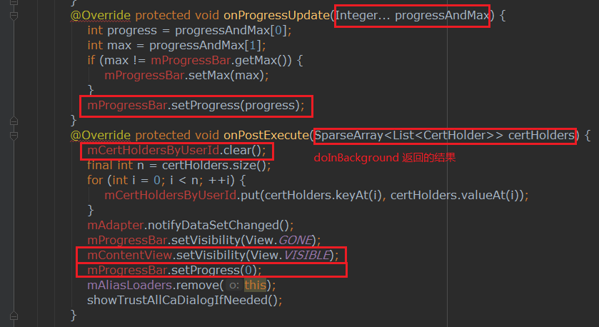 protected void onProgressUpdate\(Progress... values\) {//主线程里面执行